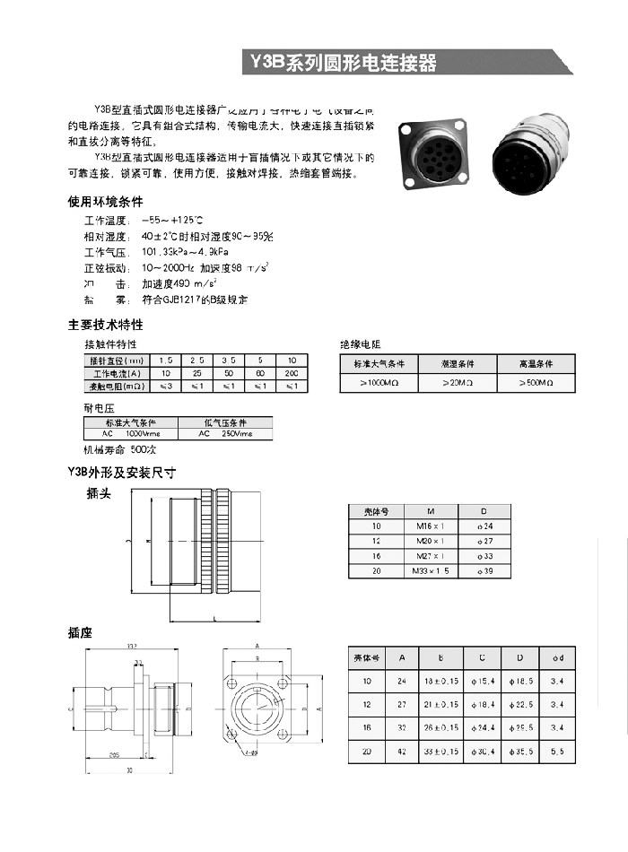 Y3B型直插式圓形電連接器廣泛應(yīng)用于各種電子電氣設(shè)備之間的電路連接。它具有組合式結(jié)構(gòu),傳輸電流大,快速連接直插鎖緊和直插分離等特征。Y3B型直插式圓形電連接器適用于盲插情況下或其它情況下的可靠連接,鎖緊可靠,使用方便,接觸對(duì)焊接,熱縮套管端接。
