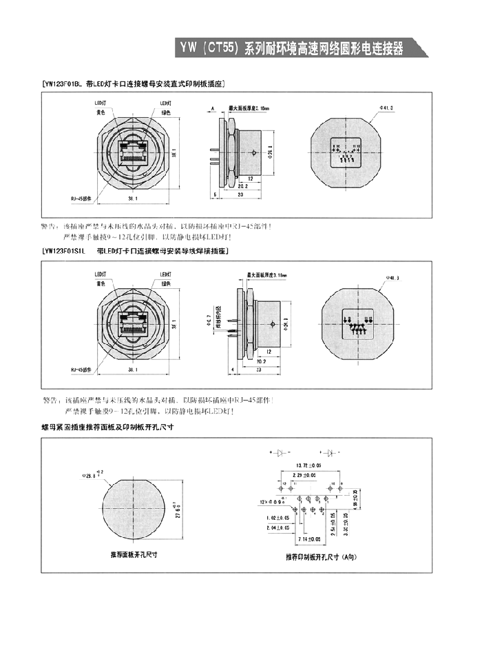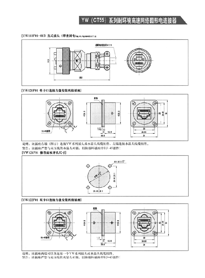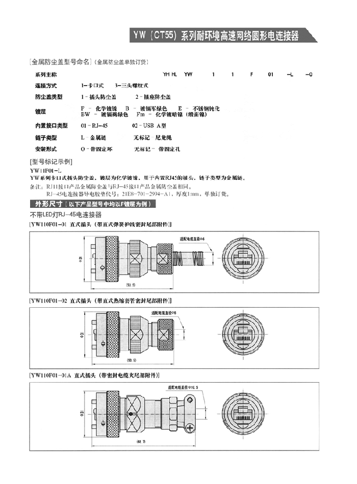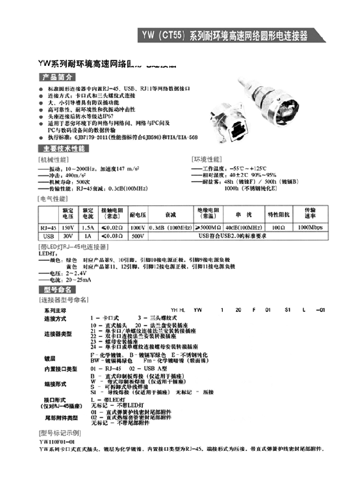 ![]() YW-RJ45圓形網(wǎng)絡(luò)電連接器: