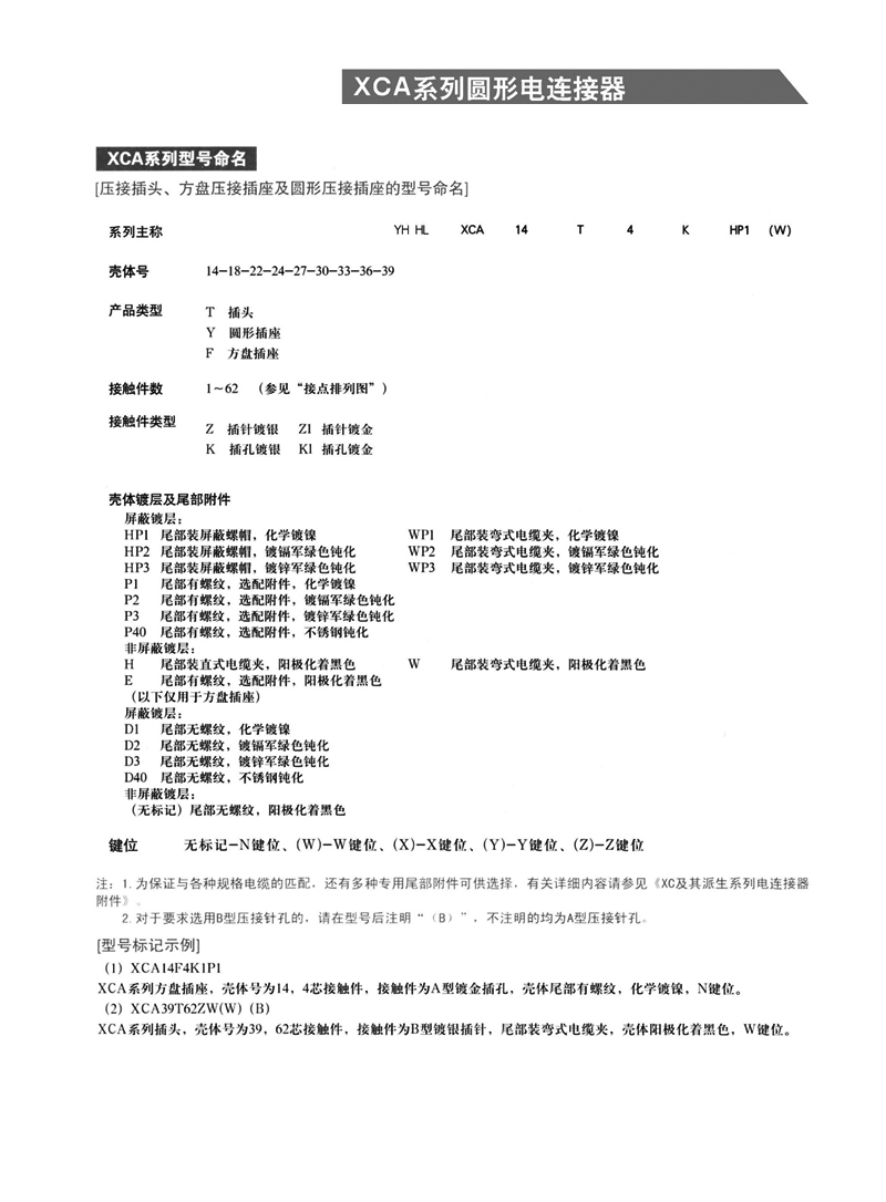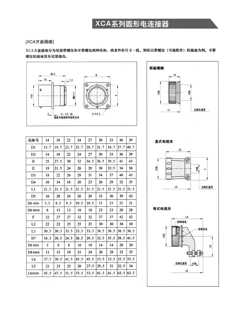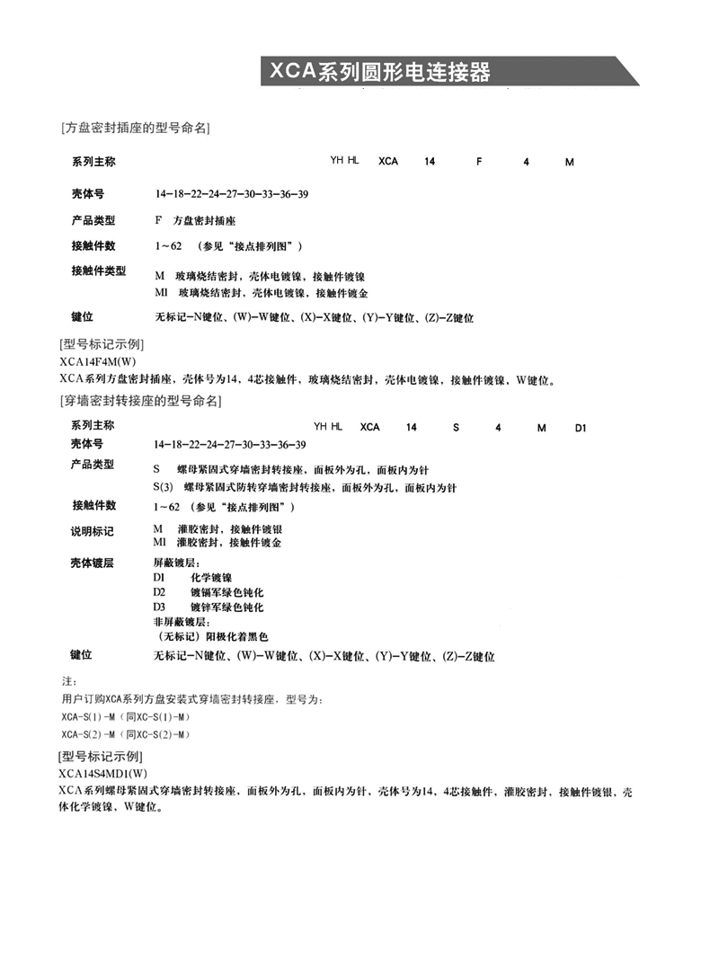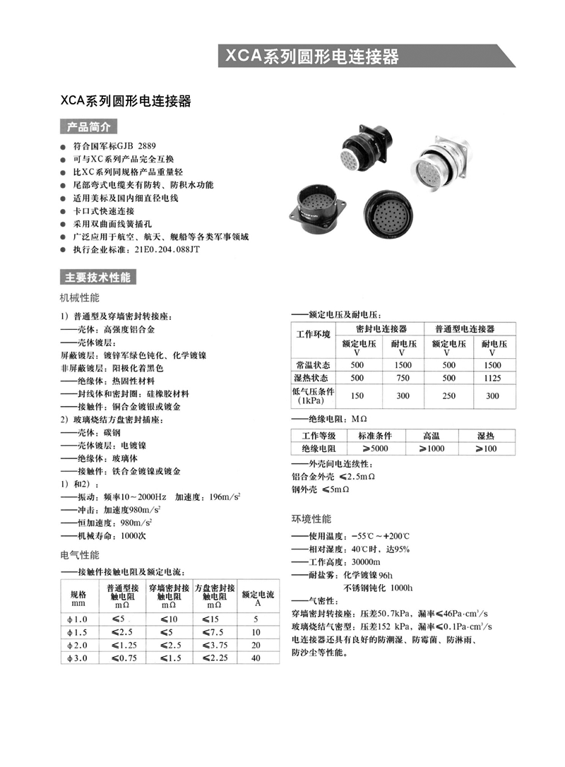XCA系列航空插頭符合GJB2889標(biāo)準(zhǔn),可與XC系列產(chǎn)品完全互配,具備比XC系列同規(guī)格產(chǎn)品重量輕的特點(diǎn),殼體材料為高強(qiáng)度鋁合金,接觸件有后松后卸壓接式,其中插孔為線簧孔,具有插拔柔和、接觸電阻小、防潮、防鹽霧、防霉菌等特性,適用美標(biāo)及國(guó)內(nèi)細(xì)直徑電線,尾部彎式電纜夾有防轉(zhuǎn)、防積水功能。XCA系列航空插頭廣泛應(yīng)用于航空、航天、兵器、艦船、野戰(zhàn)通信等軍事領(lǐng)域,以及郵電通訊、鐵路、計(jì)算機(jī)和各種儀器、儀表的線路連接。