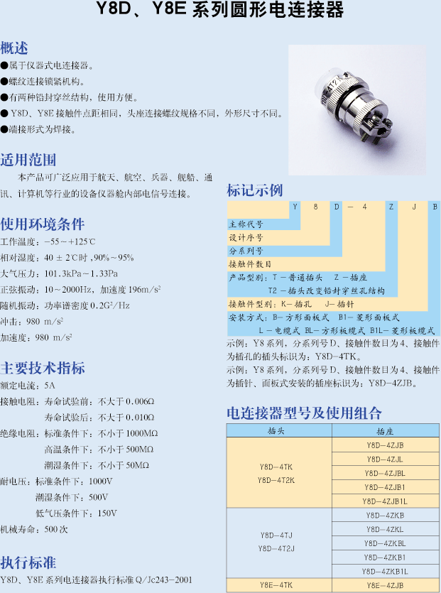 上海Y8D系列航空電連接器: