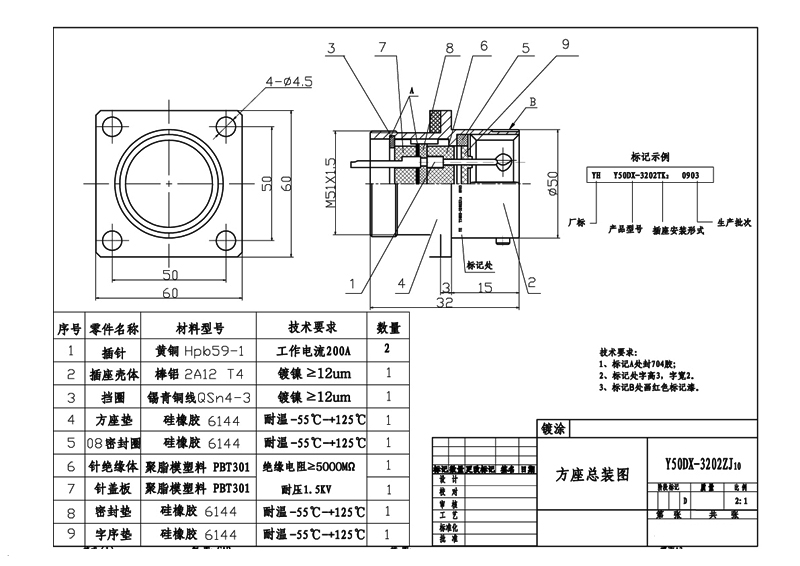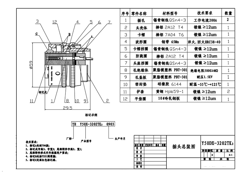 ![]() 2芯200A圓形汽車(chē)專(zhuān)用連接器: