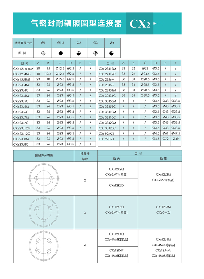 ![]() CX2系列8芯真空密封插座:
