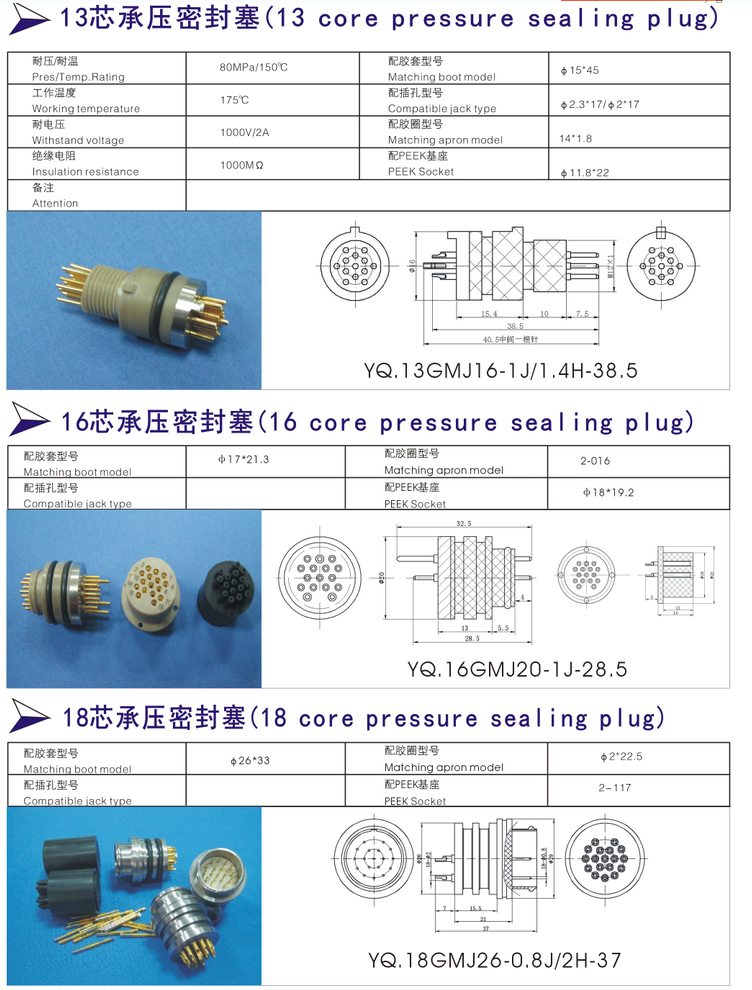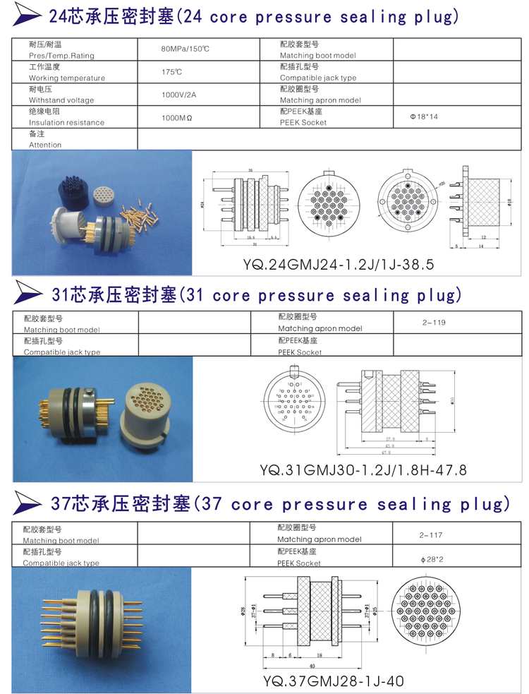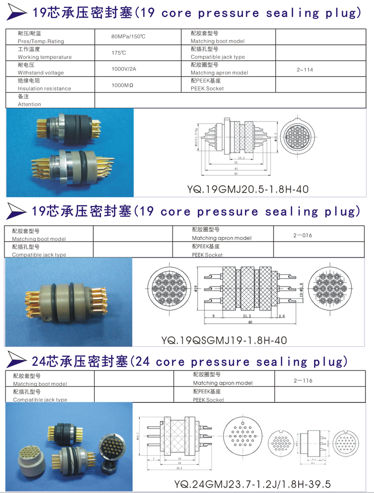 13芯,19芯,24芯高壓真空密封塞: