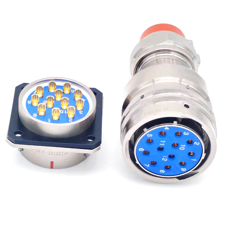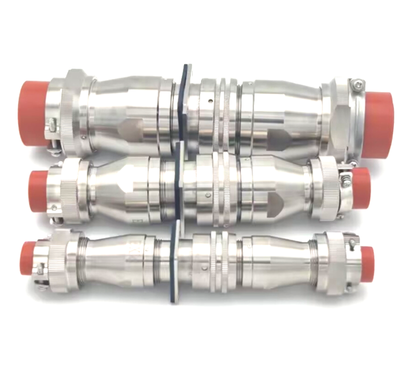 ![]() 焊接式線纜螺旋卡口鎖緊式化工行業(yè)用圓形防爆電連接器:
