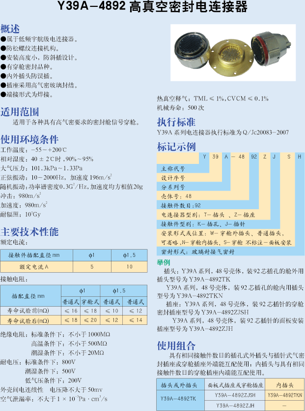 Y39A-4892高真空密封電連接器: