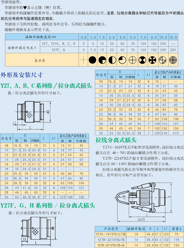 Y27B-2001ZJBM/TKL推拉鎖緊圓形電連接器,接觸件單芯,200A電流,電流大,推拉插拔,快捷牢固,該類大電流型號(hào)多,有3芯,3芯,電流達(dá)到250A.適合用于安裝空間小的地方,插拔方便。http://www.oxxtecy.cn/Product/yuanxinghangkongchatouhangkongjiechajian/