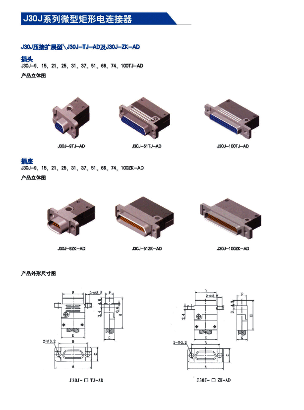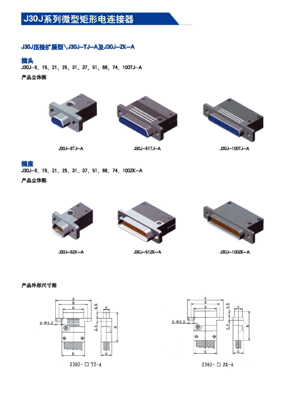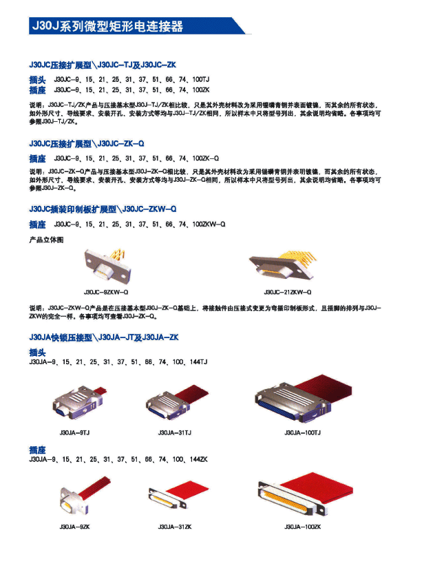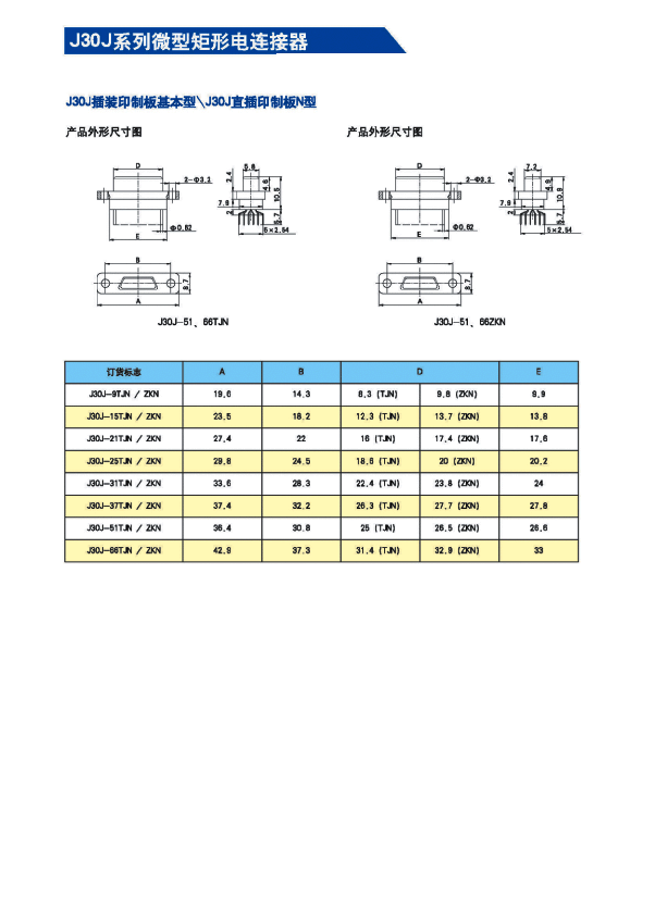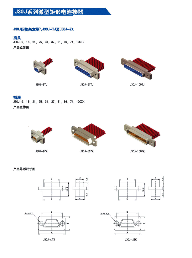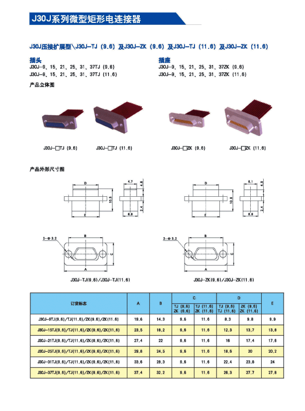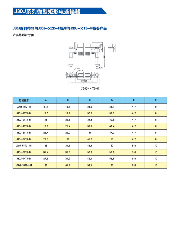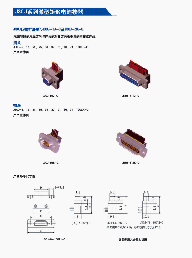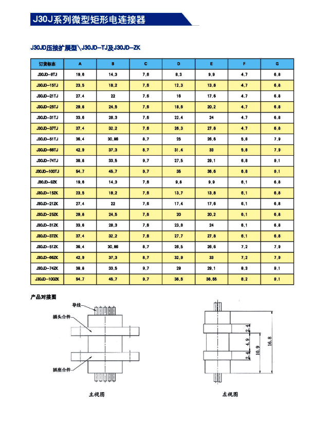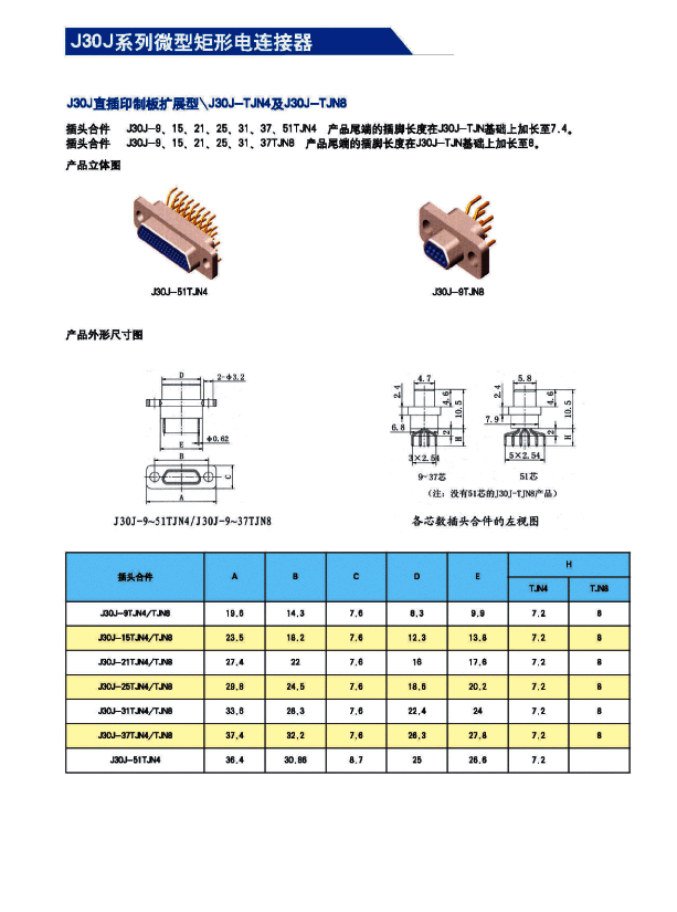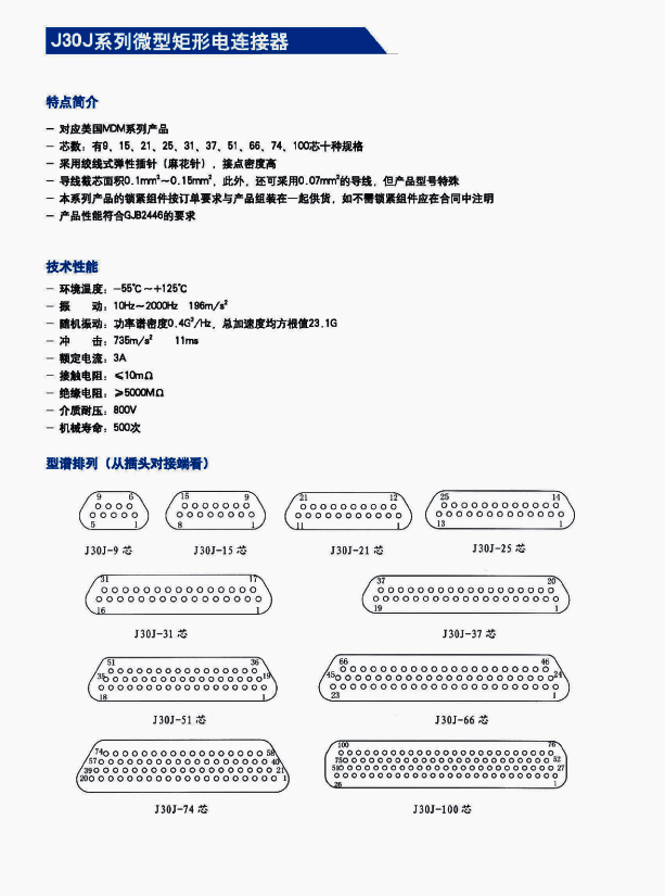 ![]() J30J系列微矩形航空插頭: