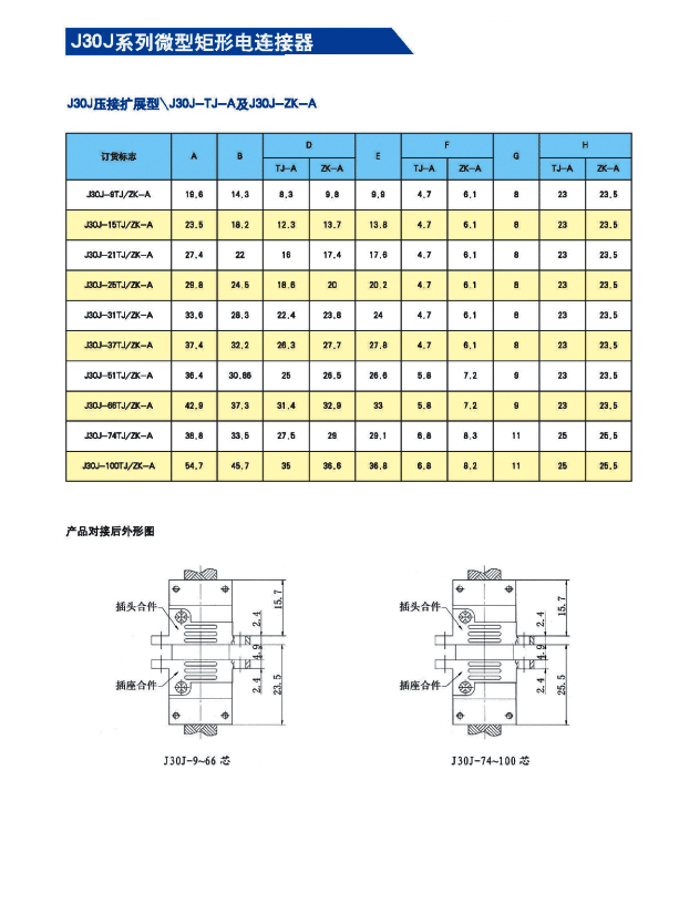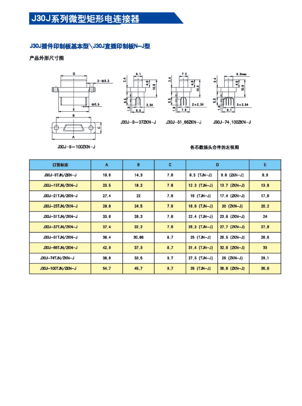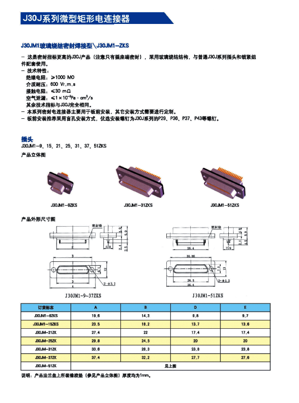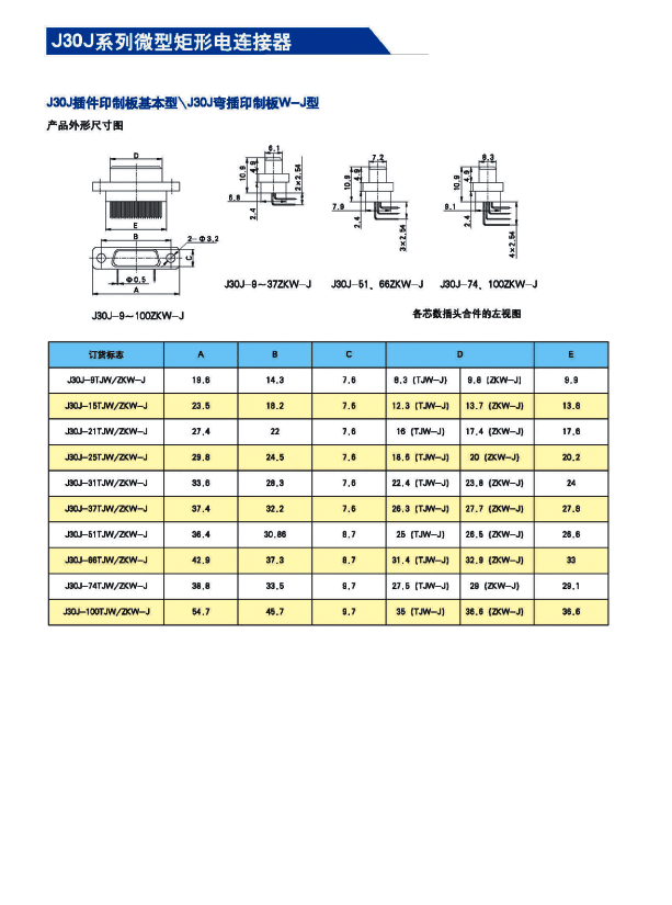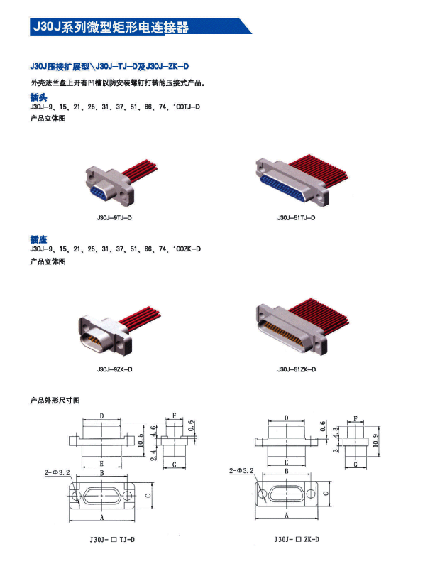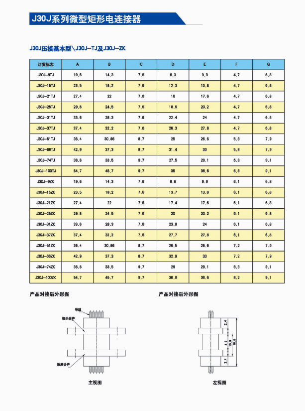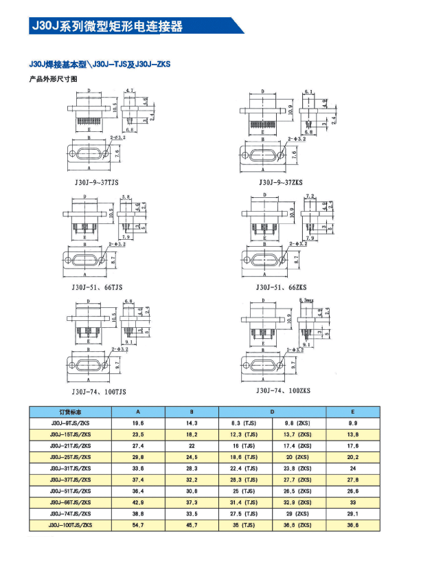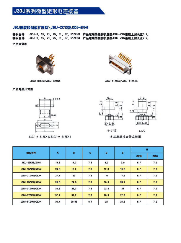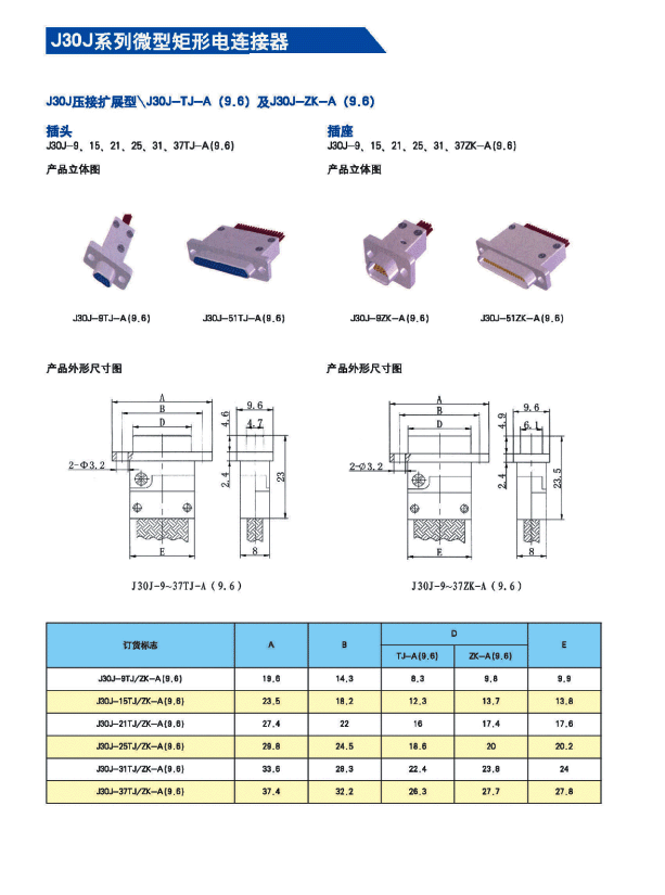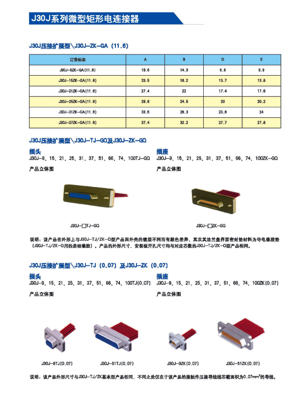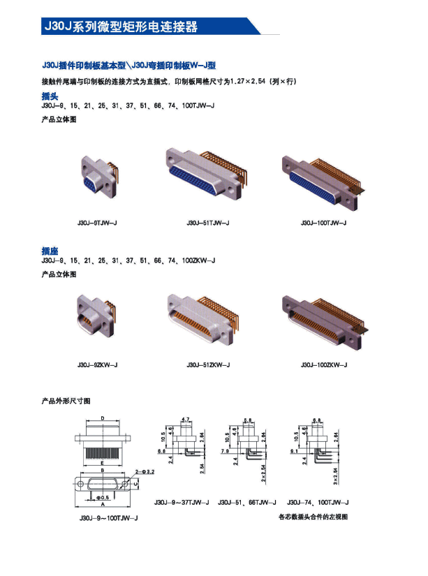 ![]() J30J系列微矩形航空插頭: