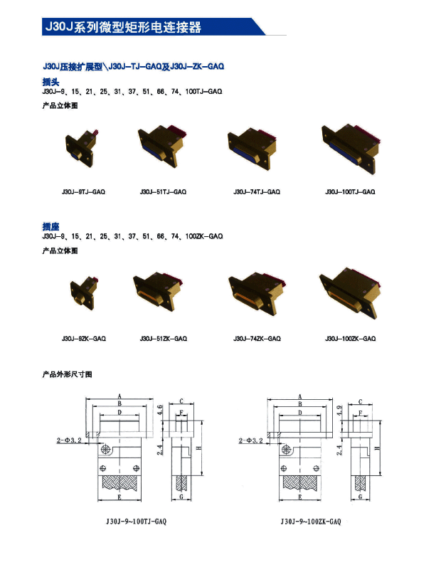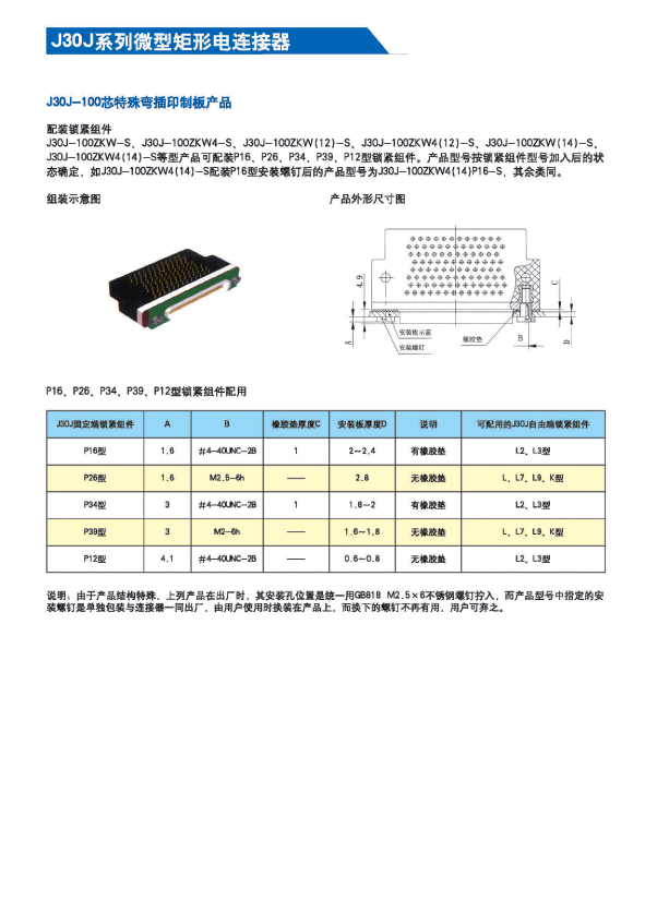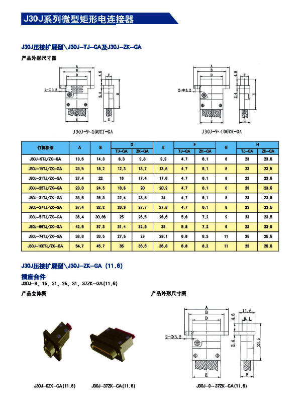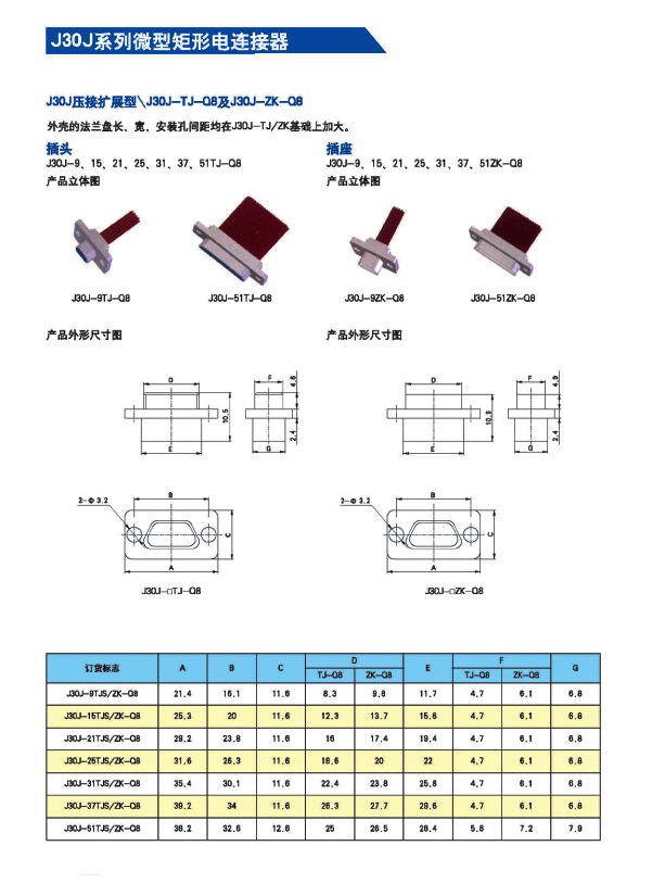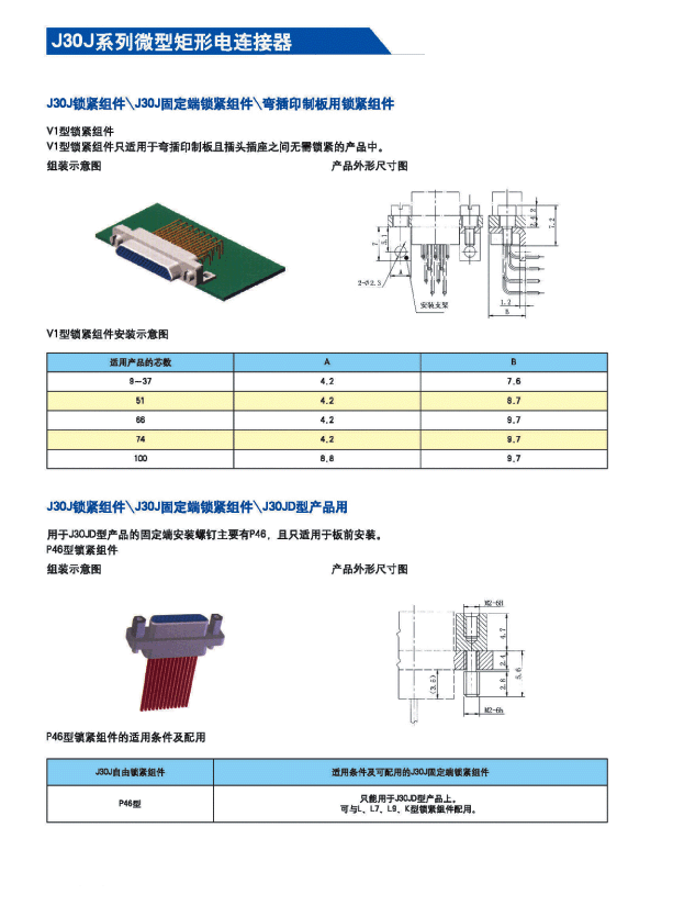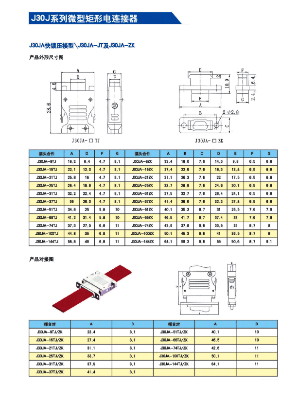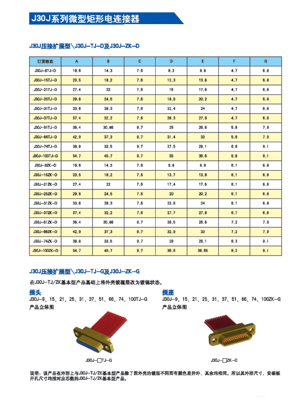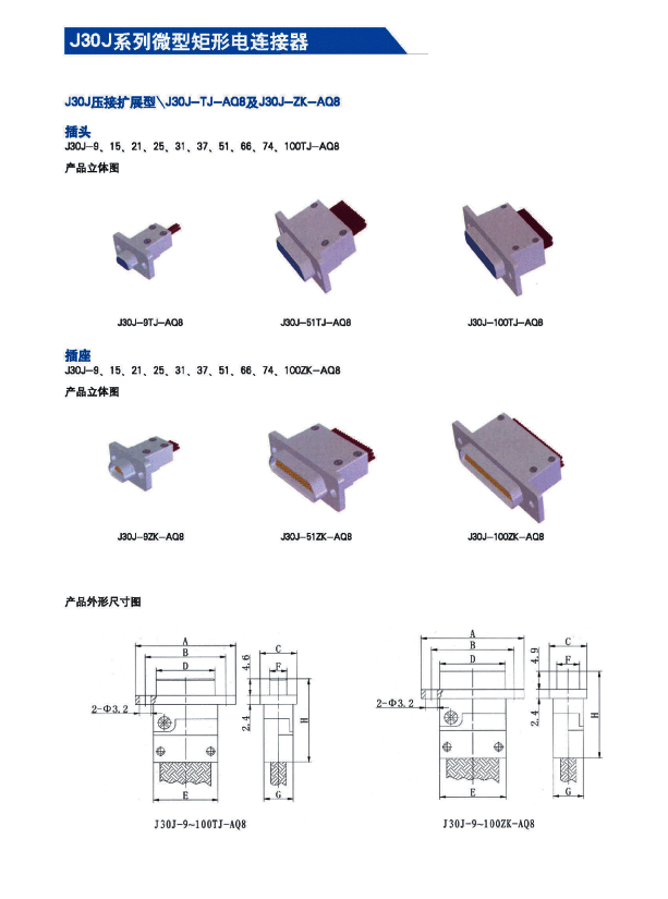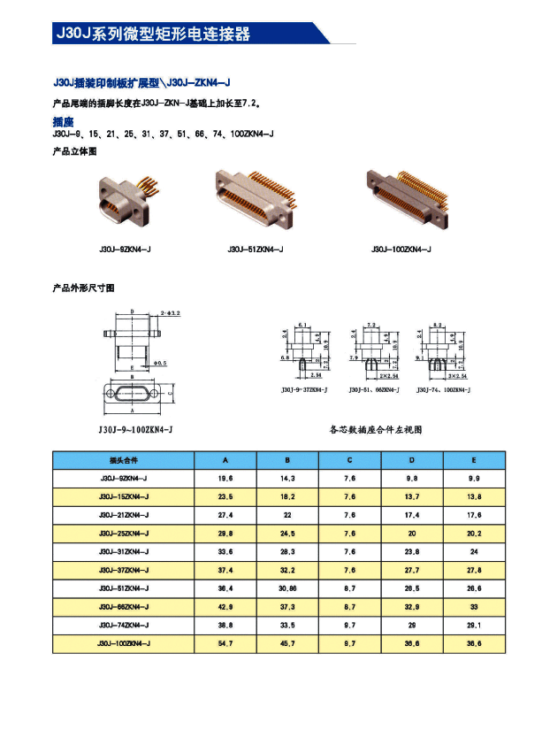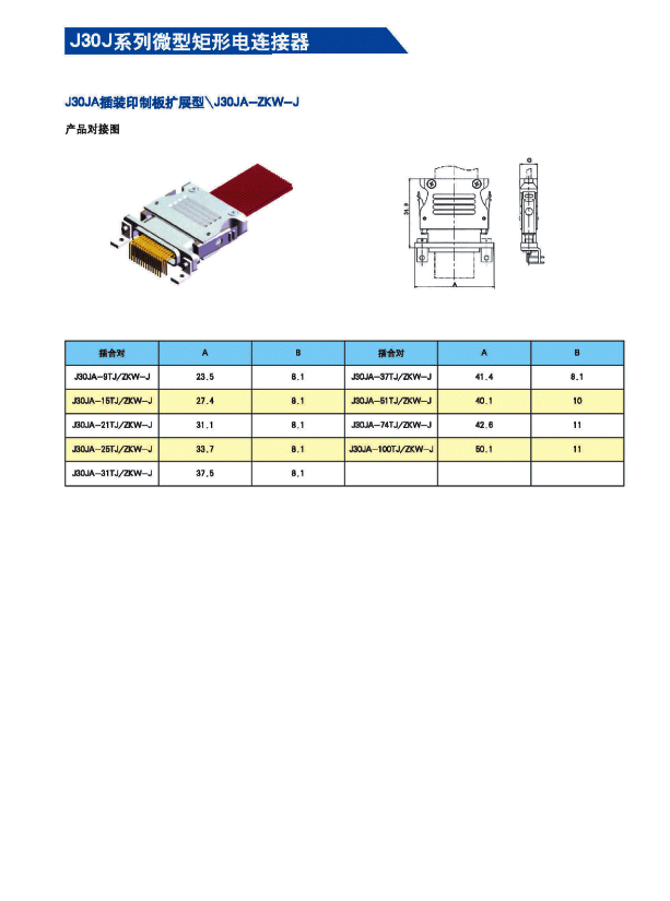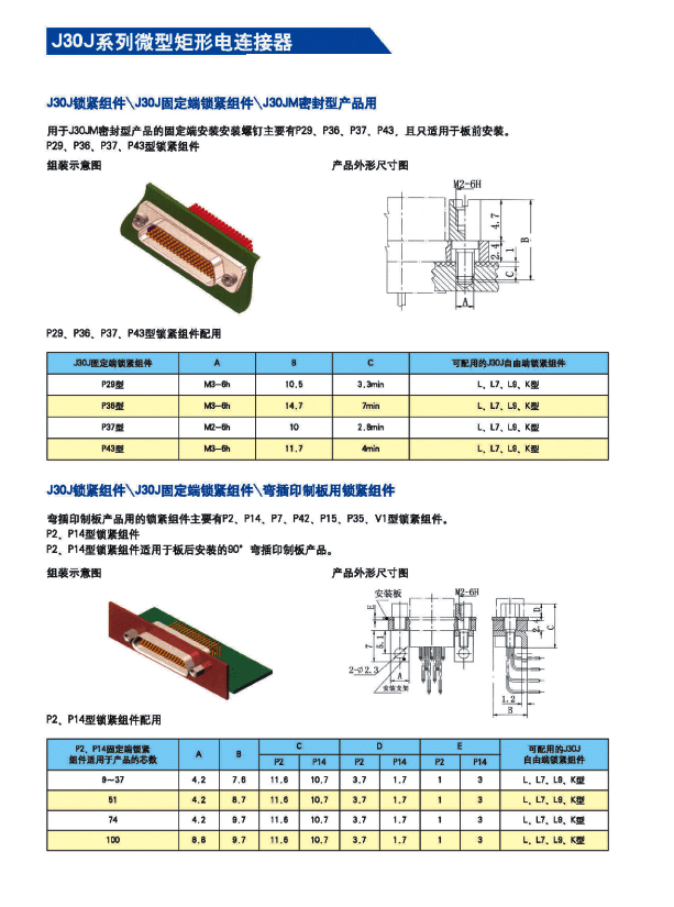 ![]() J30J系列微矩形航空插頭: