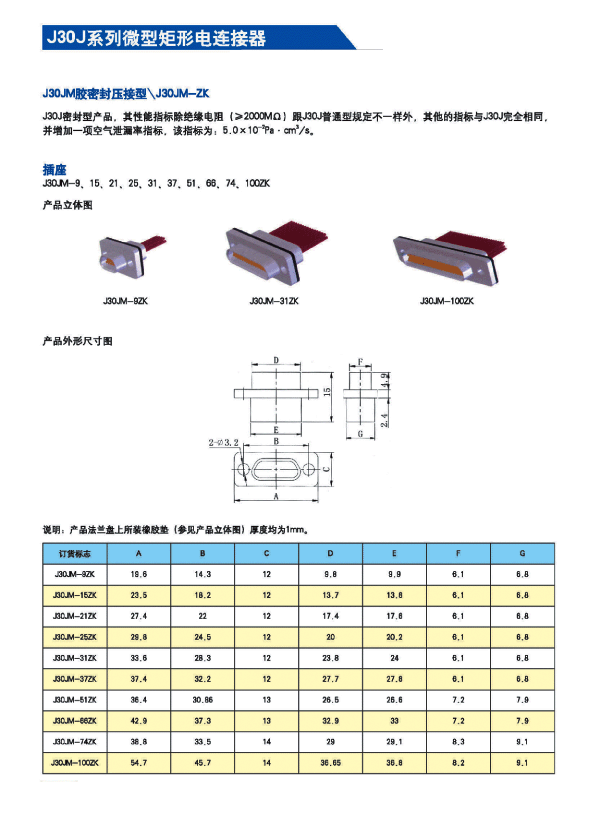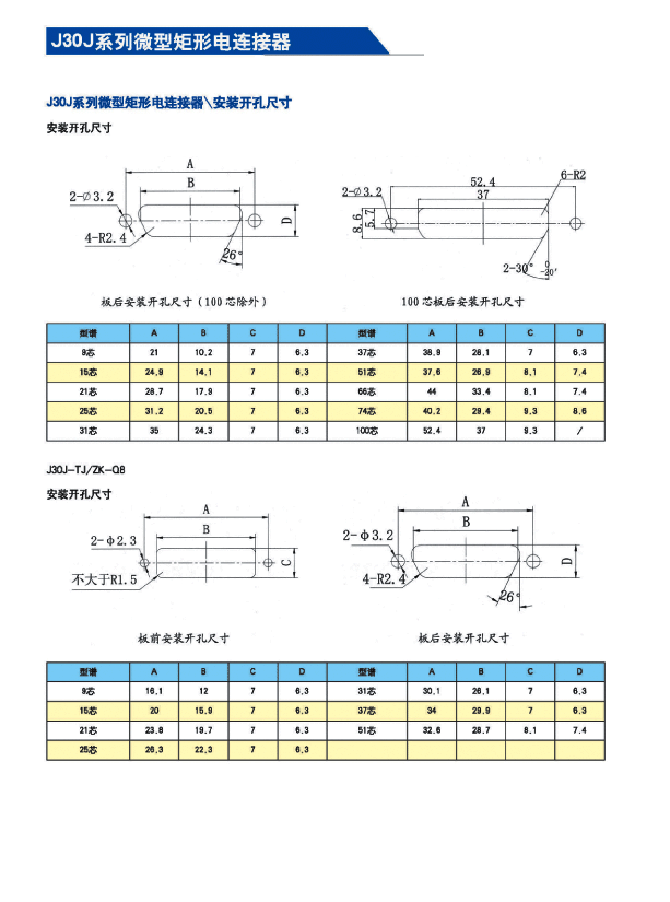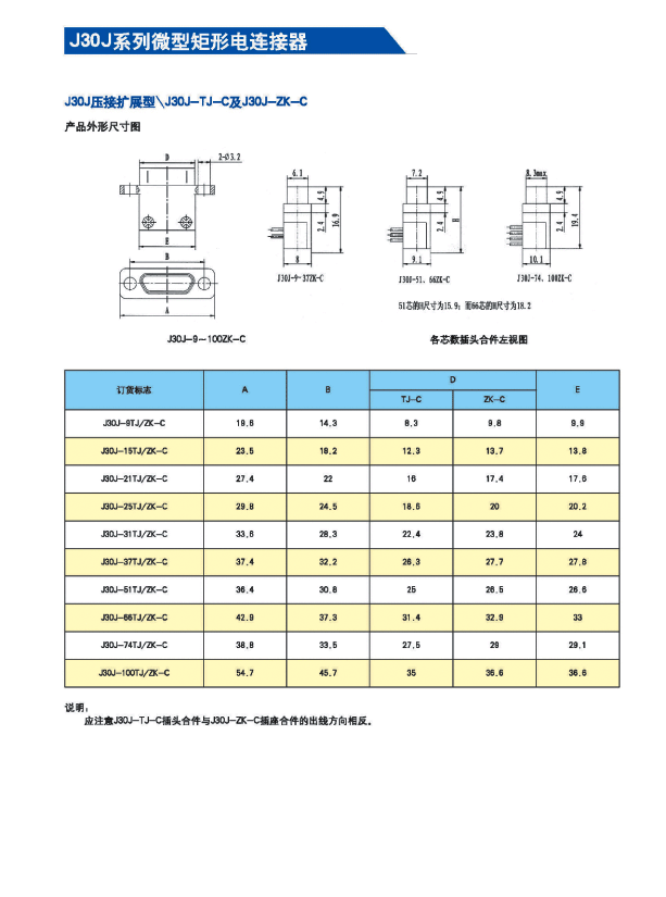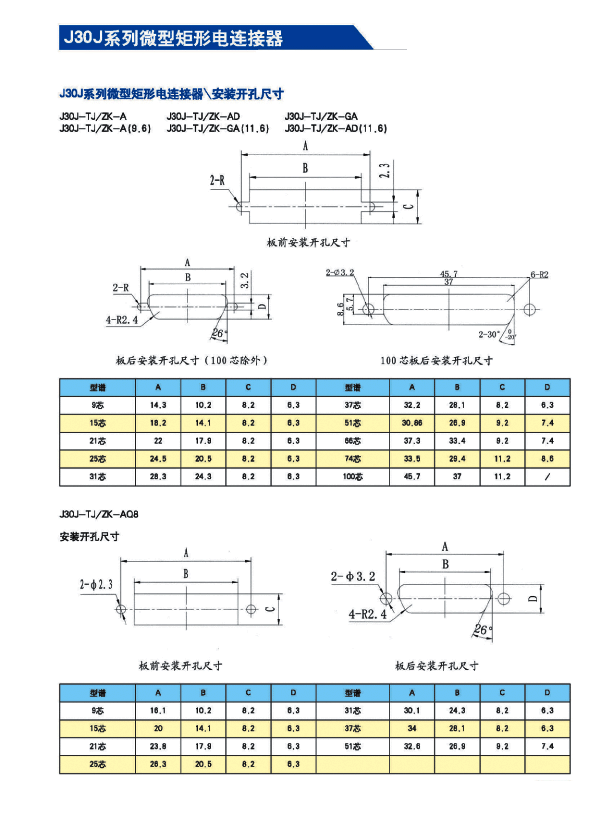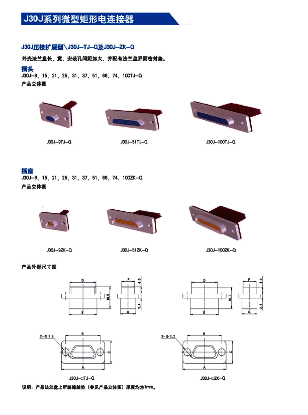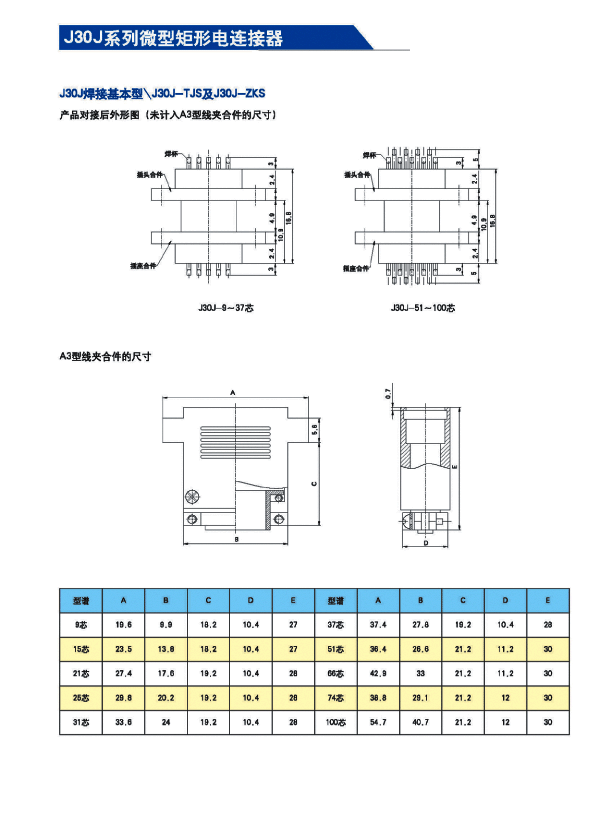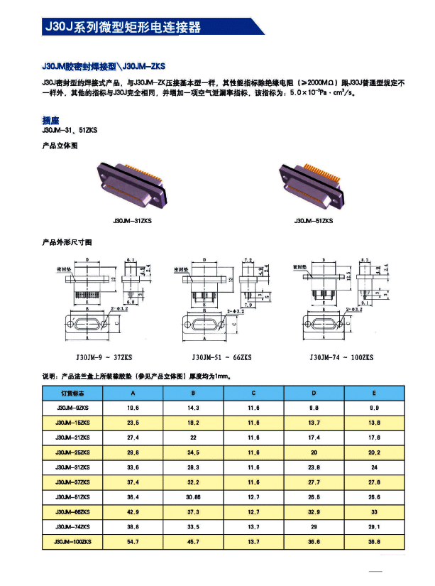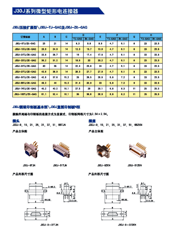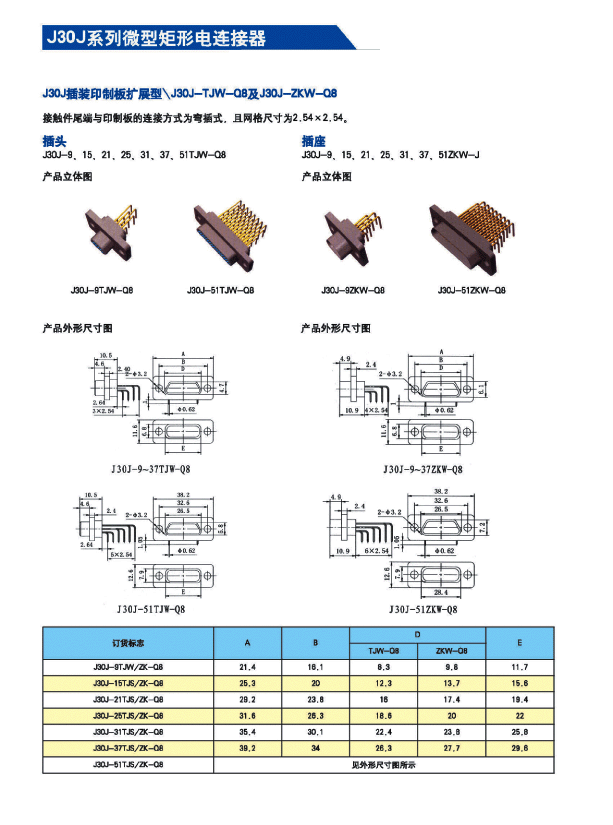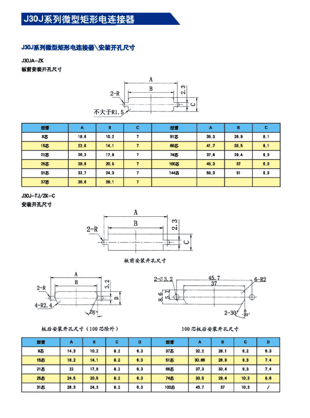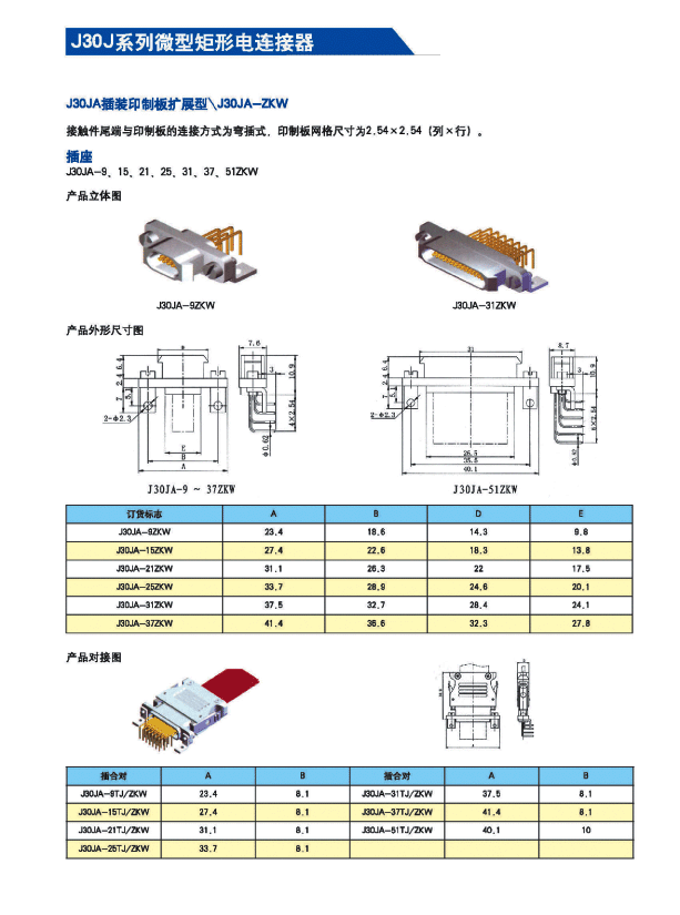 ![]() J30J系列微矩形航空插頭: