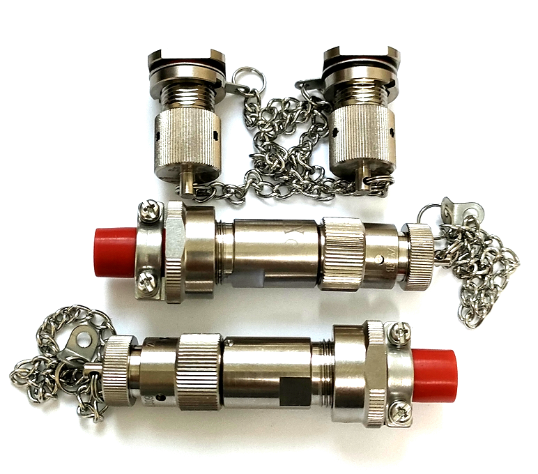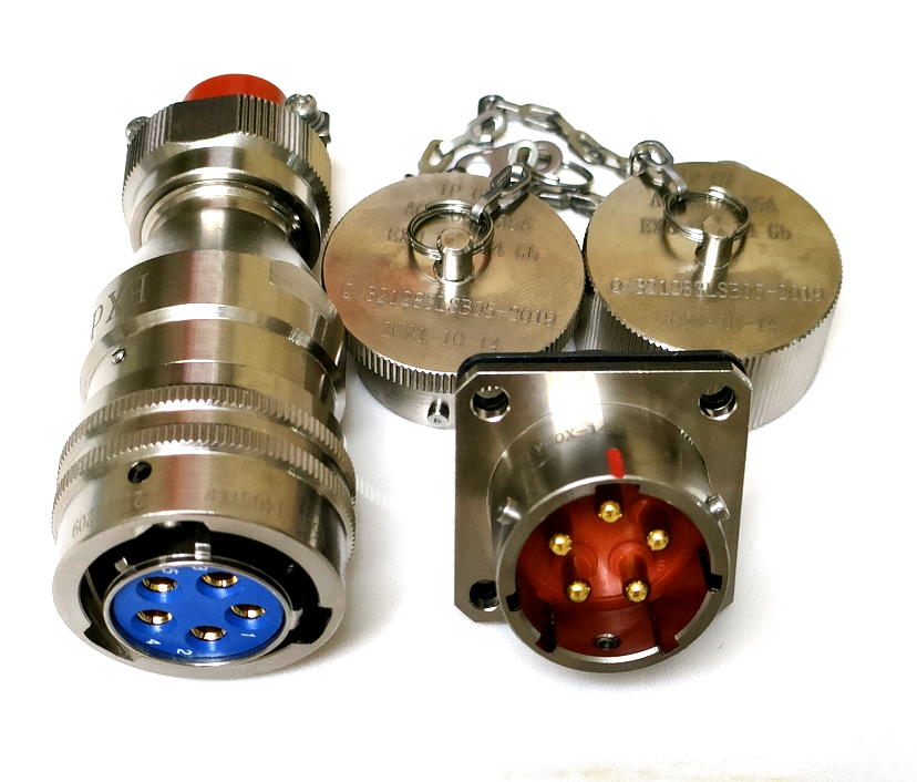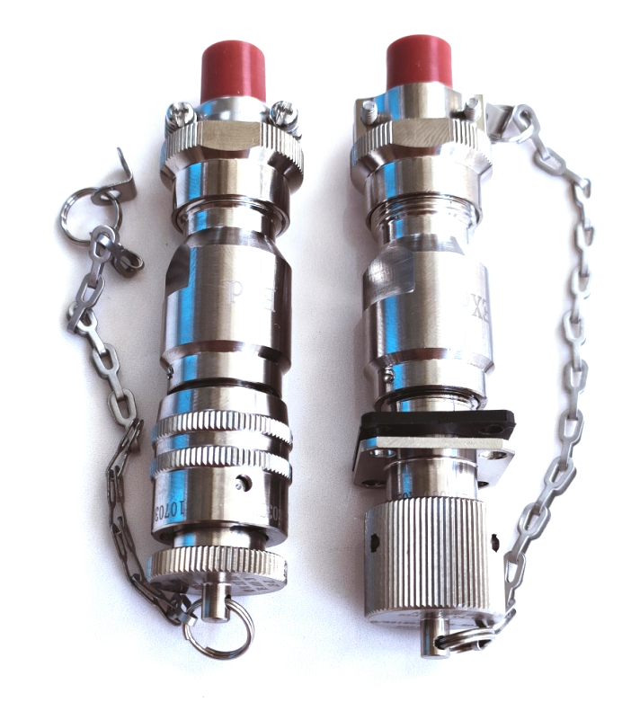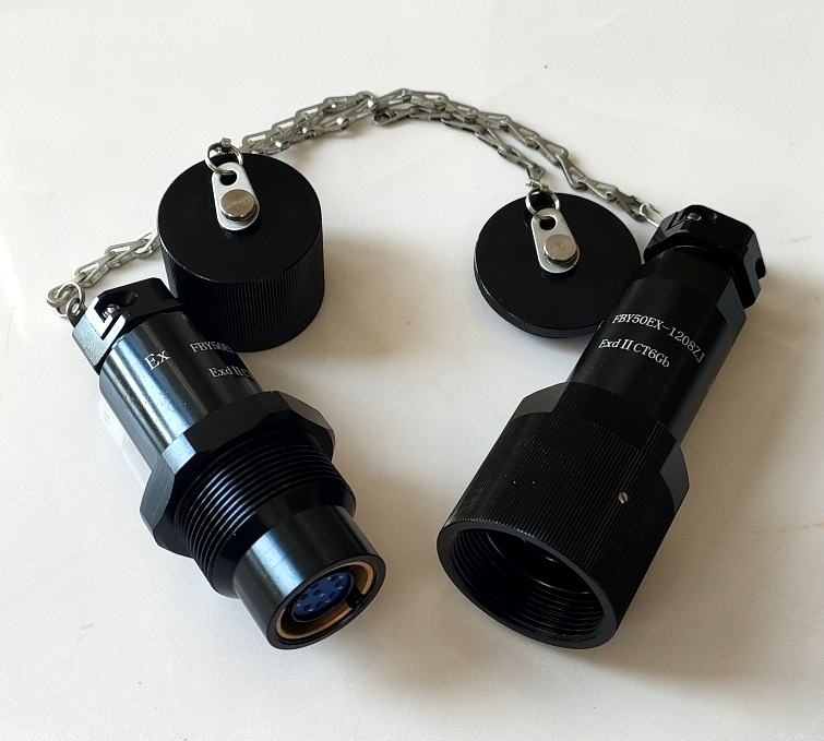 誰家生產(chǎn)的防爆連接器型號種類多? 自從公司成立了新產(chǎn)品開發(fā)組,防爆連接器品種層出不窮,芯數(shù)不一樣,電流大小不一樣,尺寸大小也不一樣,客戶 使用的要求不一樣,有固定式,對接式,連接方式有螺旋卡口式,螺紋連接,直插鎖緊,客戶根據(jù)喜歡選用。該系列 電連接器分隔爆型,無火花型,密封型,目前尺寸大小借用GJB1001A標(biāo)準(zhǔn),壁體加厚,每個連接處有多層密封設(shè)計, 杜絕一切可能的滲漏引起的爆炸。殼體號從06號~24號,從1芯~85芯,電流從5A~800A,,顏色有銀白色,黑色,軍 綠色。