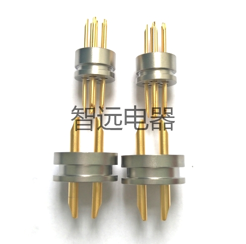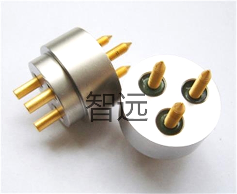 玻璃燒結(jié)真空密封端子 玻璃燒結(jié)真空密封端子形狀是各式各樣,尺寸大小沒有固定,是客戶根據(jù)使用環(huán)境,空間大小自己制定,但密封模式都 是玻璃燒結(jié)工藝,燒結(jié)方式有兩種:1.壓強大一般是點式燒結(jié),在整體毛呸上均勻分布打眼,玻璃粉末燒結(jié)的面積小,抗震能 力強。還有一種耐電壓高,絕緣電阻高,采用整體燒結(jié),玻璃體滿燒,漂亮平整,各有特長。表面處理有鈍化,鍍鎳,鍍金, 造價有差距,使用戶請根據(jù)實際情況選擇,建議不要盲目追求。下面是我公司做個的產(chǎn)品圖樣: